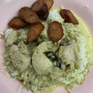 This 50 year old place serves a fusion green curry which is a mix of Chinese and Thai components. Its usually served with a boiled egg or a cured pork sausage that is made of fermented meat and has a sweet taste.